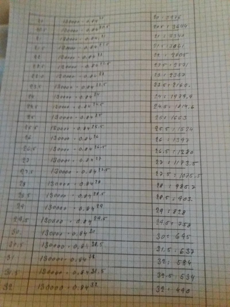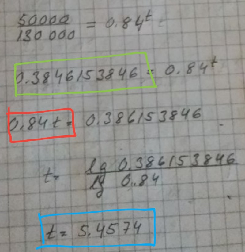 2. Rödmarkerat: Du har skrivit 0,84*t istället flr 0,84^t.