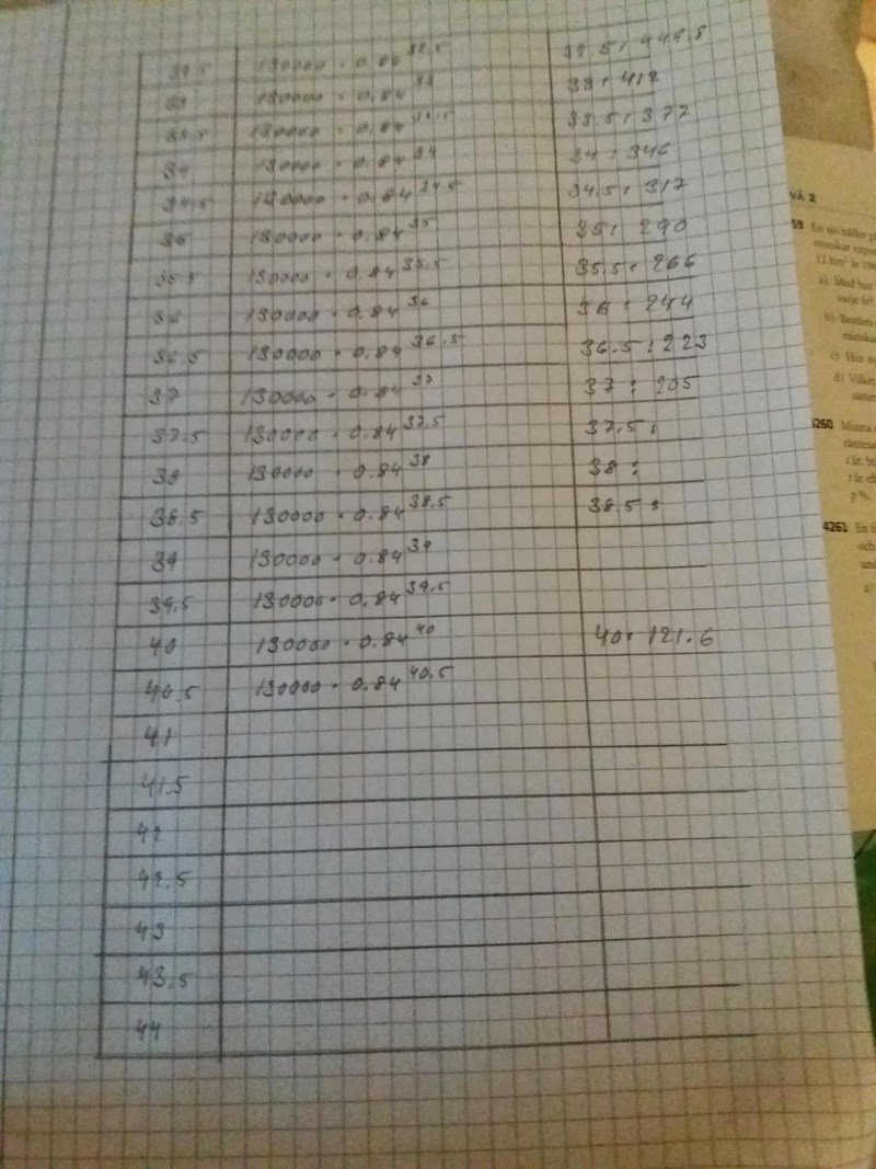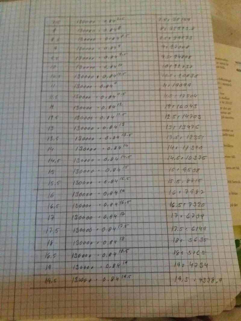 Det var så här jag började med, men fick inte rätt. Därför höll jag på bli galen, när jag fick sätta gång med värdetabeller.