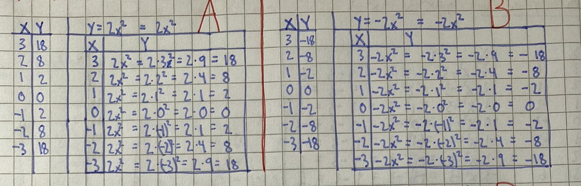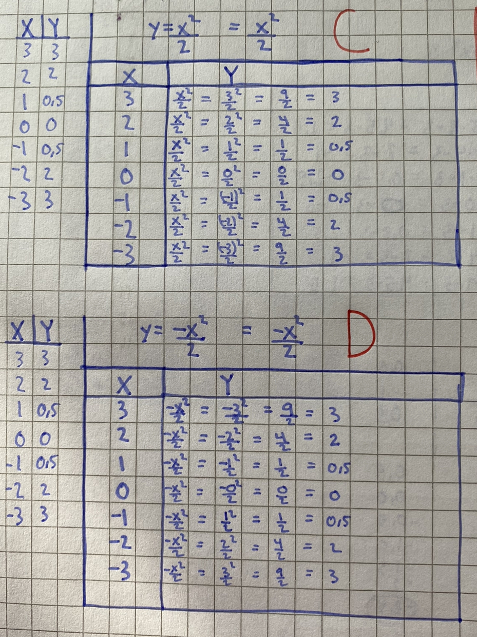 men på C och D får jag ut samma värden på x & y, om jag då ritar in det i koordinatsystemet får jag ju identiska grafer, och det är fel (iaf visar facit annat). Tror jag räknar fel på D men vet inte varför de blir fel, måste ju tänka fel någonstans….