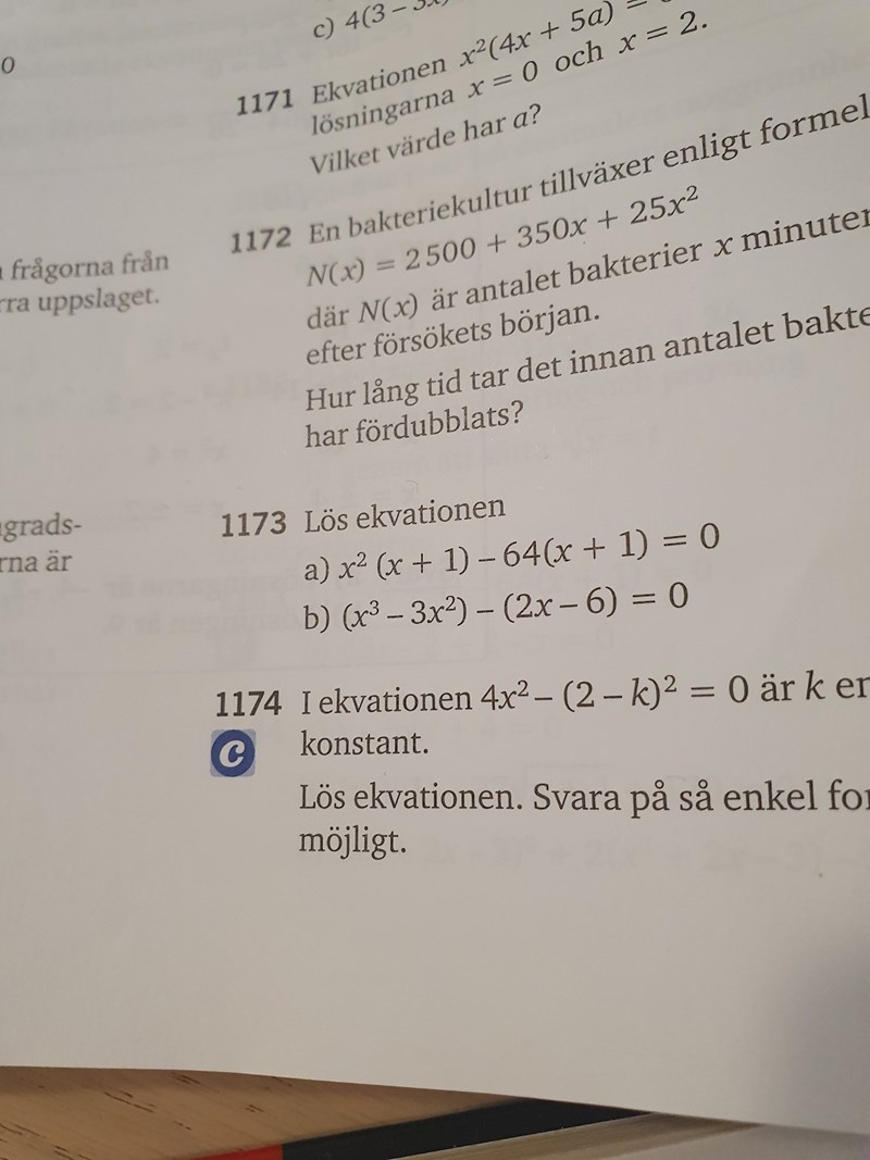 Vi har dock inte undersökt fallet då . Det måste vi göra separat, alltså att undersöka huruvida är en lösning till ekvationen eller inte. Det visar sig vara en lösning i detta fall. Totalt får vi då tre olika lösningar.