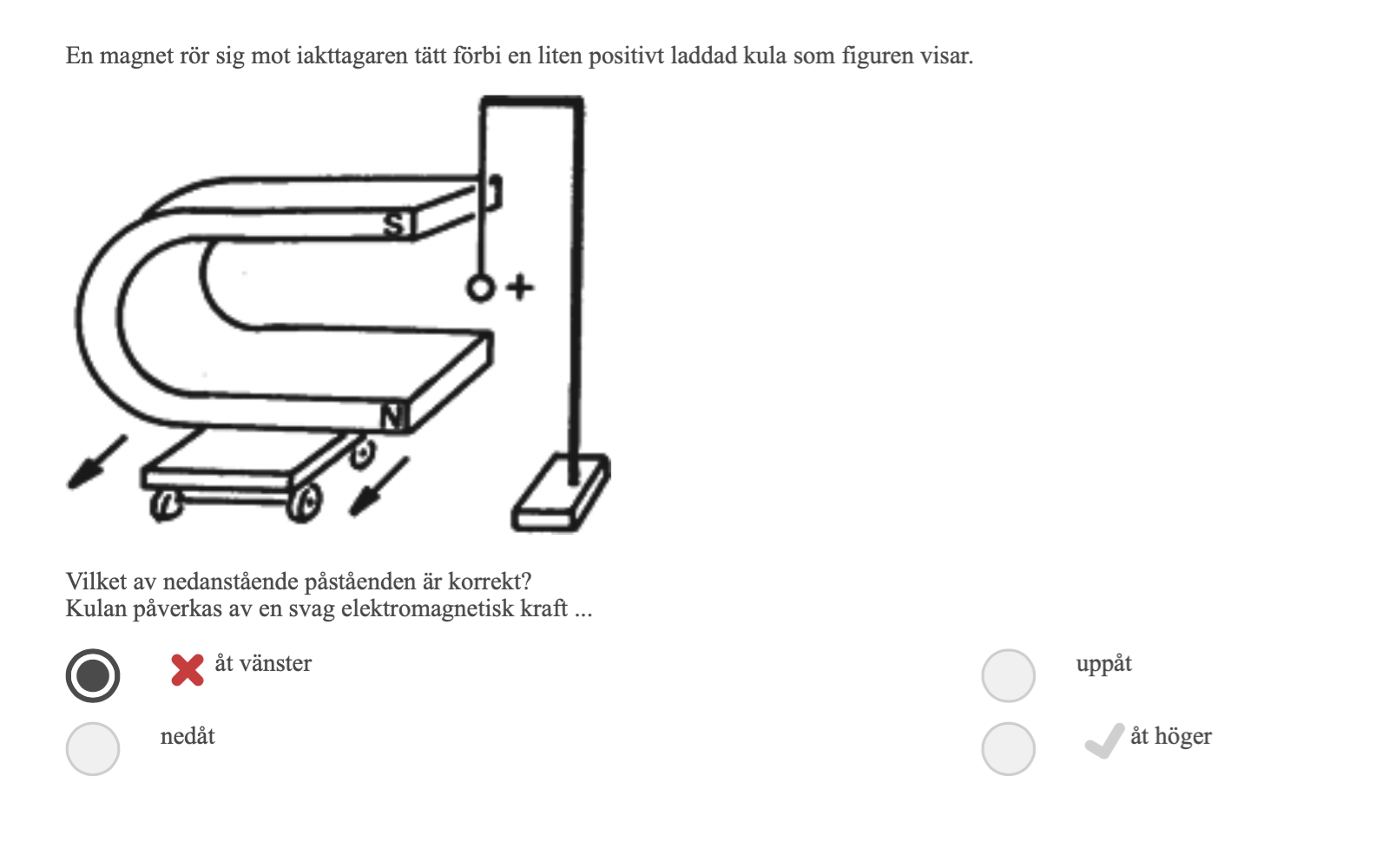 Det här handlar om en laddning som rör sig i ett magnetfält. De har vänt på det så att det är magnetfältet som rör på sig och inte laddningen. Men effekten är densamma som om magneten stod stilla och laddningen skulle röra sig ifrån iakttagaren. Du använder högerhandsregeln för att komma fram till kraftens riktning. Hjälper det?