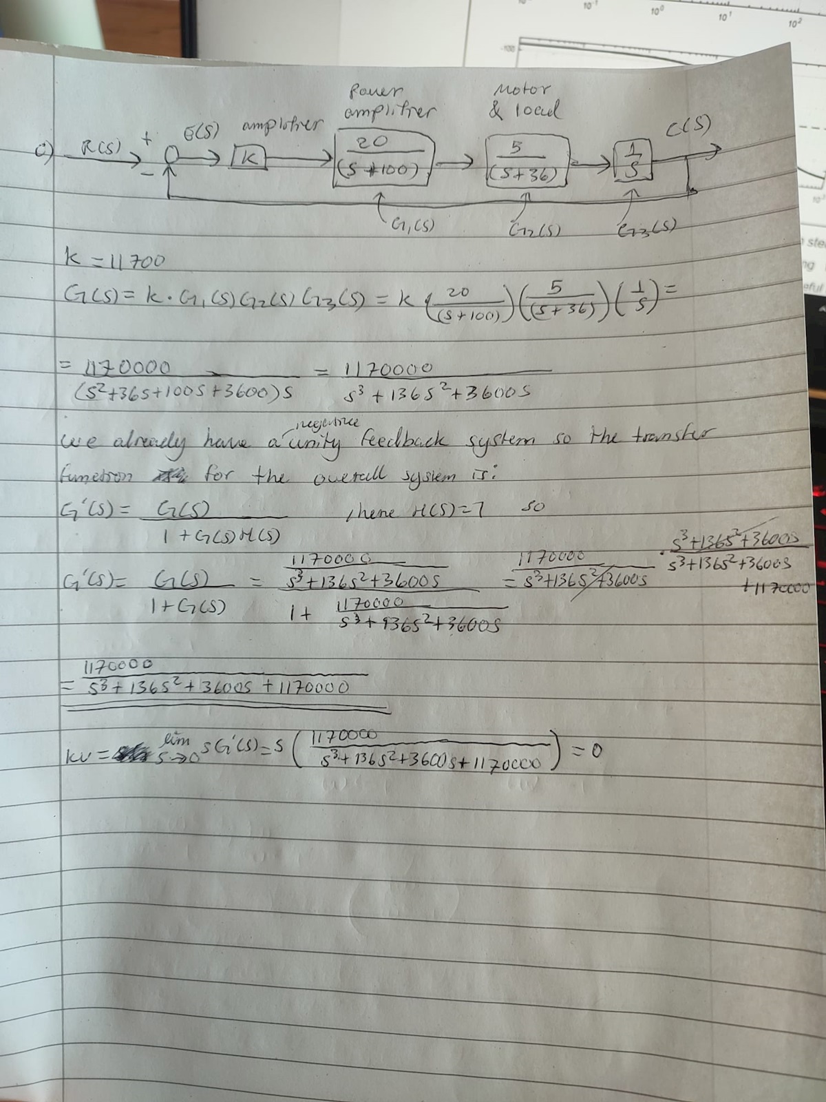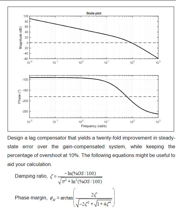 Hej! Jag försökte lösa frågan vad Kv blir, Nu försökte jag lösa den genom att kolla på systemets transfer function istället men även om jag löste den på "fel sätt" (inte från bode plotten) skulle jag vilja förstå vad jag gjorde fel för att inte få fram rätt kv med metoden jag använde?:( Jag undrar även hur de gjort för att få fram kv genom att titta på bode plotten? de säger att det är frekvensen där den "utökade magnitude plotten" (vad menar de med detta?) korsar magnituden 0dB. I plotten jag ser nedan är frekvensen 100 när magnituden är 0dB. men de säger att Kv = 300 rad/sec?