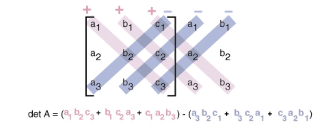 Denna minnesregel för att beräkna determinant hos 3x3or är också ett alternativ.