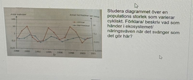 Frågan gäller hur populationernas storlek påverkas under tiden. Och hur det kan förklaras med näringsväven/ekosystemet.