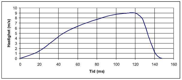 I diagrammet (som är ett v/t-diagram) kan du se att hastigheten ökar då t = 20 ms.