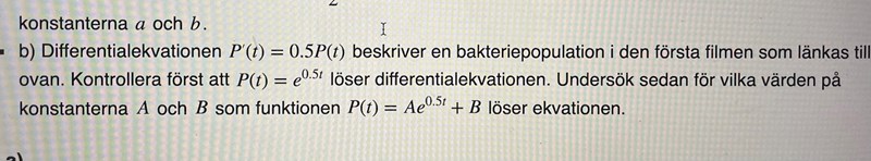 först delen att kontrollera lösningen P(t) lyckas jag göra. Men hur kan jag göra för att undersöka vilka vården på konstanteran som läser ekvationen?