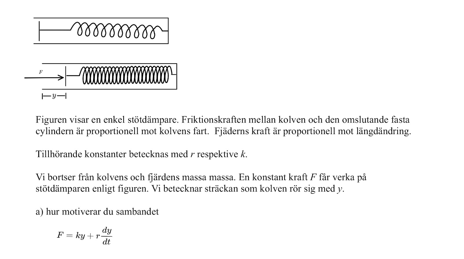 Och k är förstås fjäderkonstanten (eller -k) men det är lite vidrigt med r som en friktionskoefficient när t ex b eller (eta) är vanliga beteckningar.