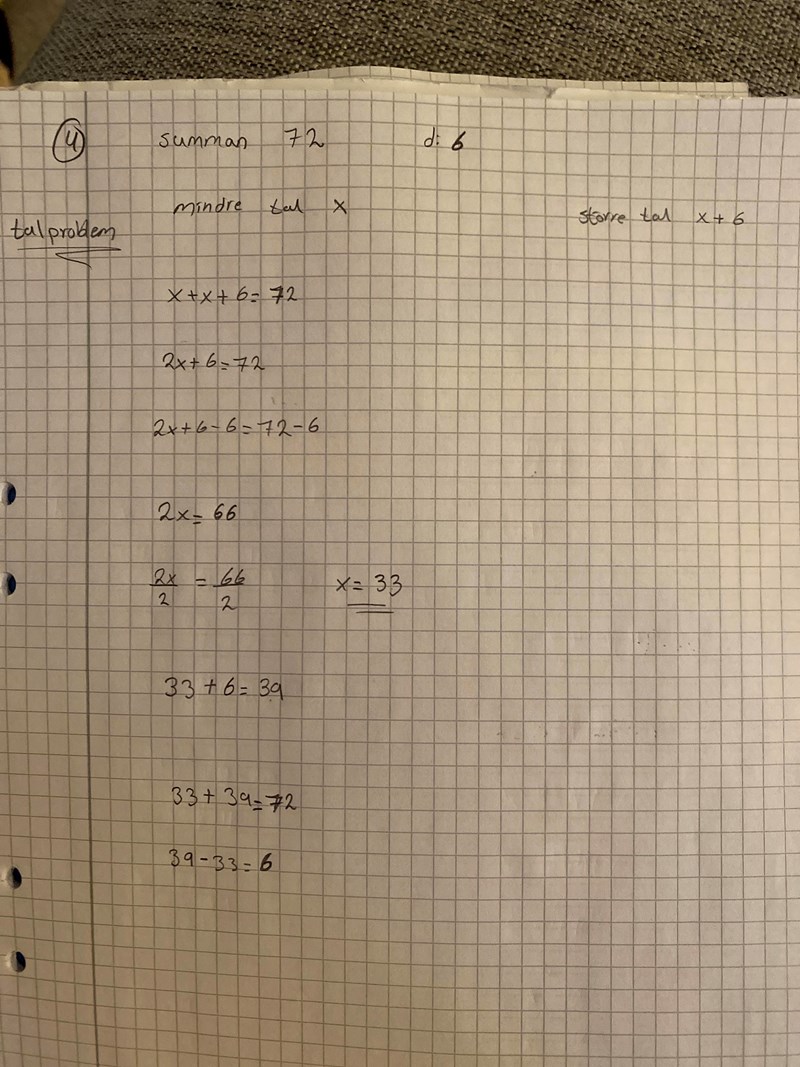 Differensen mellan två tal är sex