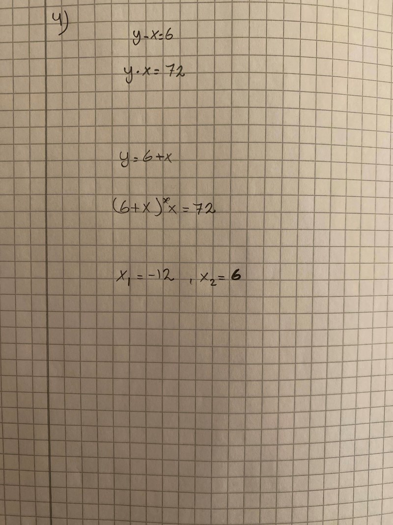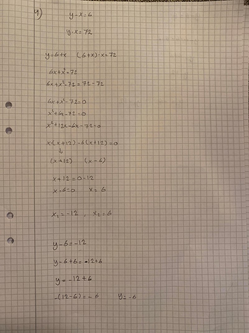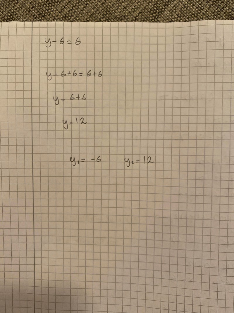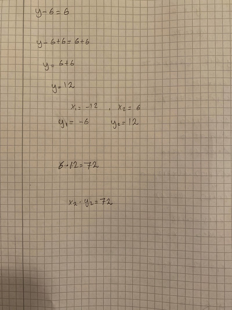 Du fick att x= -12 då är y2 = x +6 = -12 + 6 = -6 som du skrev