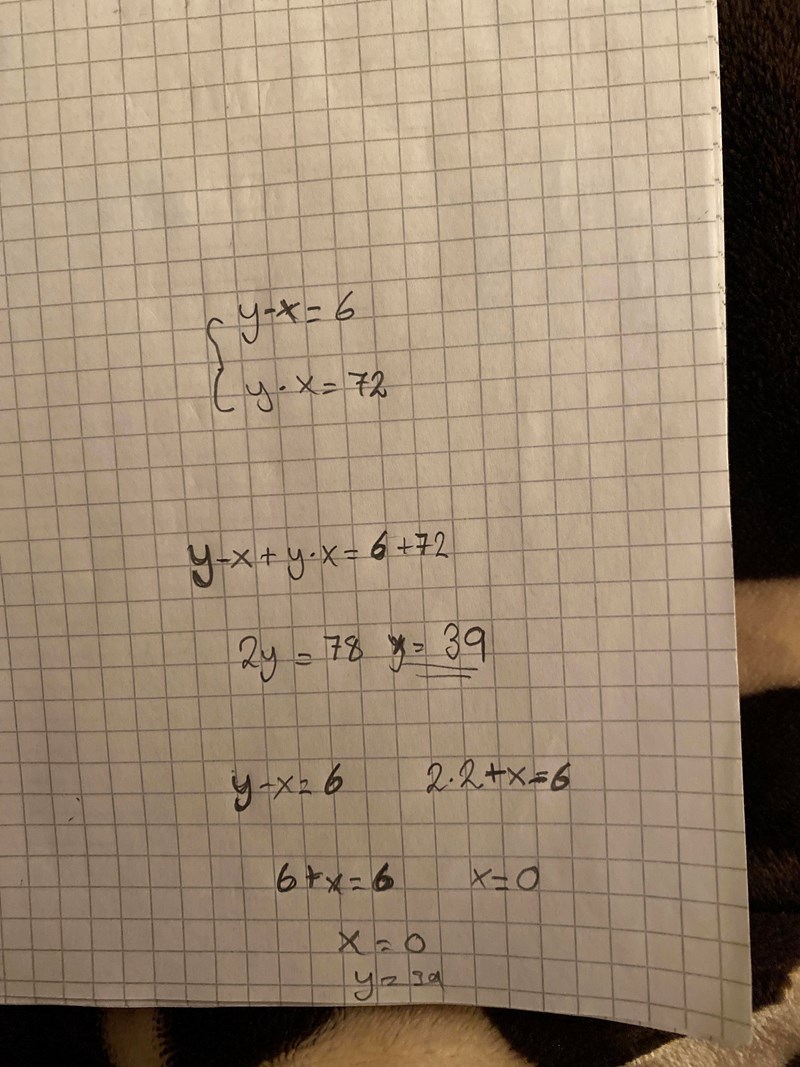 y*x=72 Är - y/x ? Så här får jag upp?
