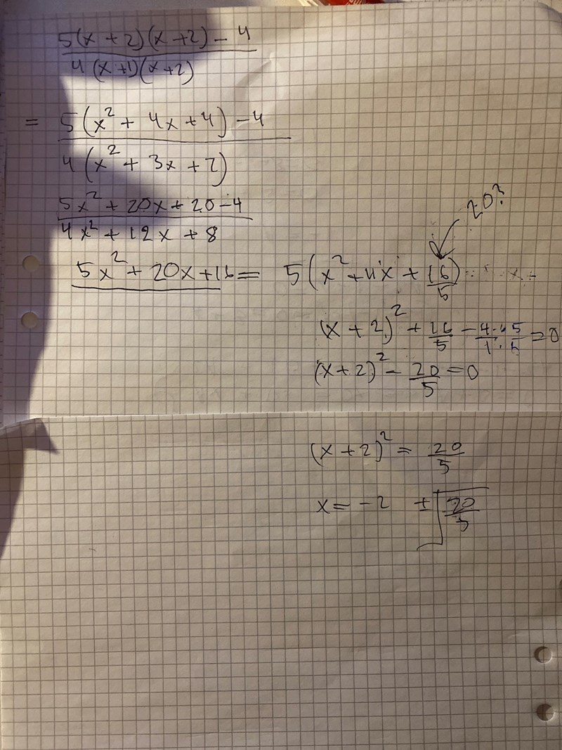 Jag är lite osäker, men det ser lite fel ut (slarvfel) där vid och efter 5x^2+4x+16