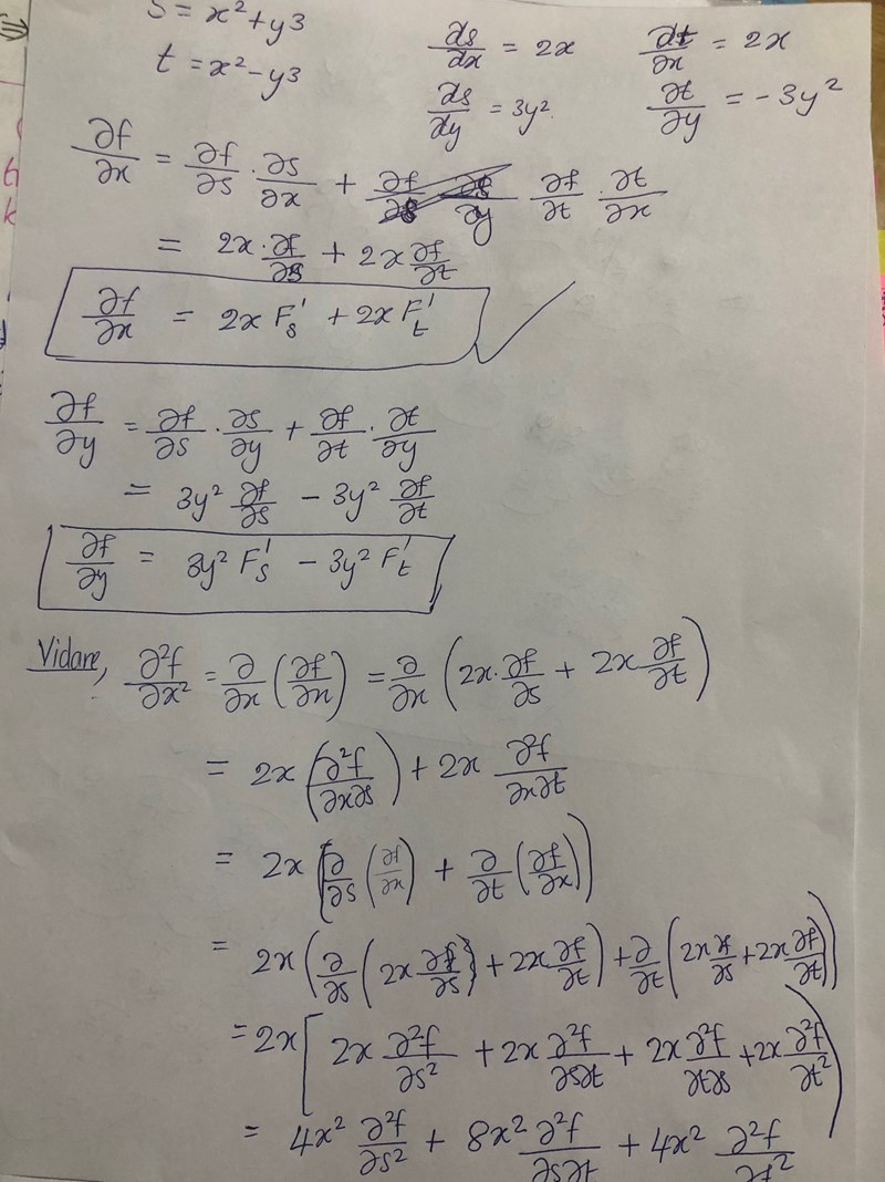 precis som du skrivit. Sedan ska man komma ihåg att och nu båda är funktioner av och när man ger sig på att beräkna de partiella andra-derivationerna, exempelvis .