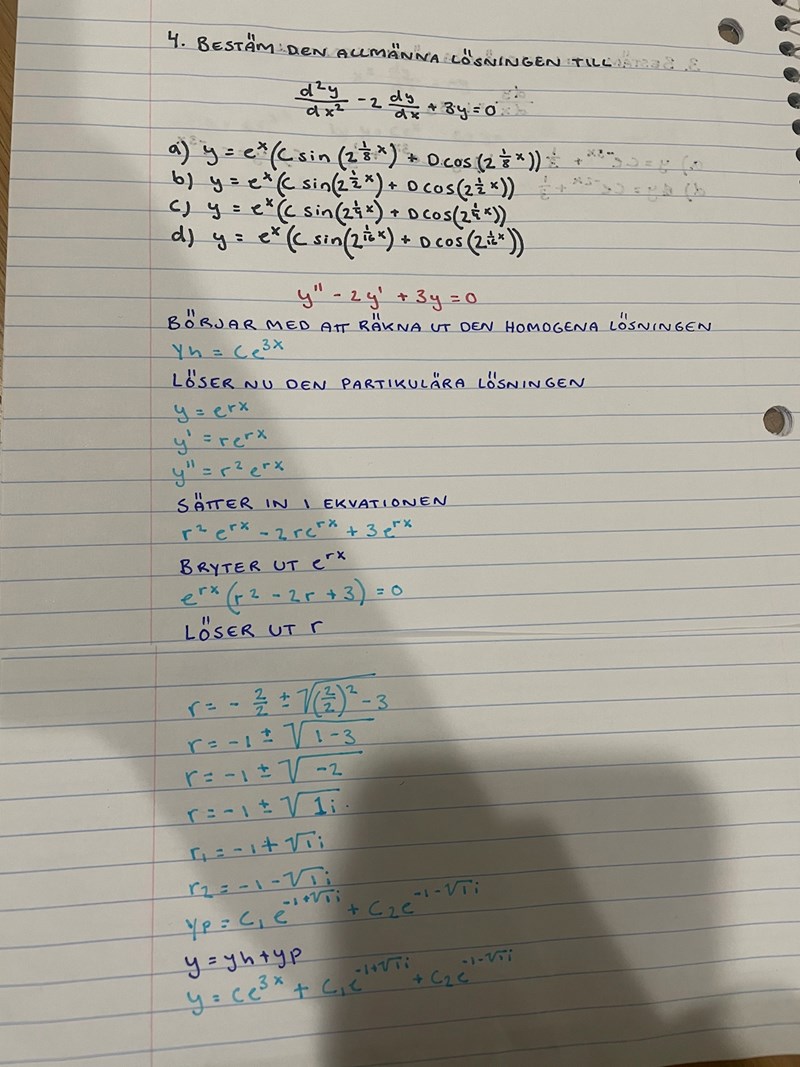 Felet du gör är att du börjar lösa diffekvationen istället för att bara pröva vilken av de föreslagna lösningarna som stämmer.