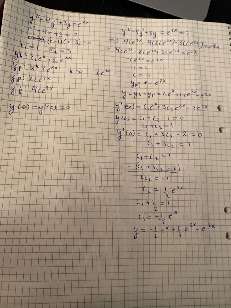 Det är en ekvation, så det kan du själv kontrollera :) Derivera din generella lösning två gånger och se om den uppfyller diffekvationen. Isåfall har du gjort rätt så långt. Sen kan du kolla om din specifika lösning uppfyller de givna villkoren.