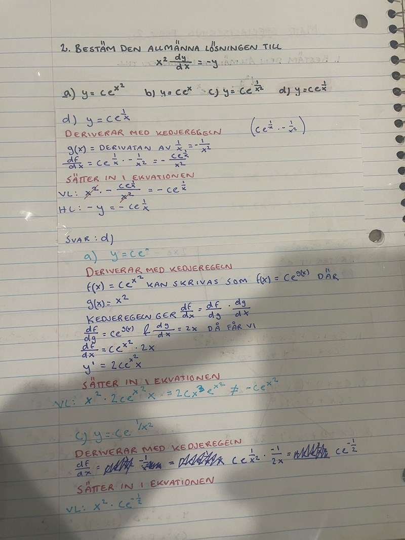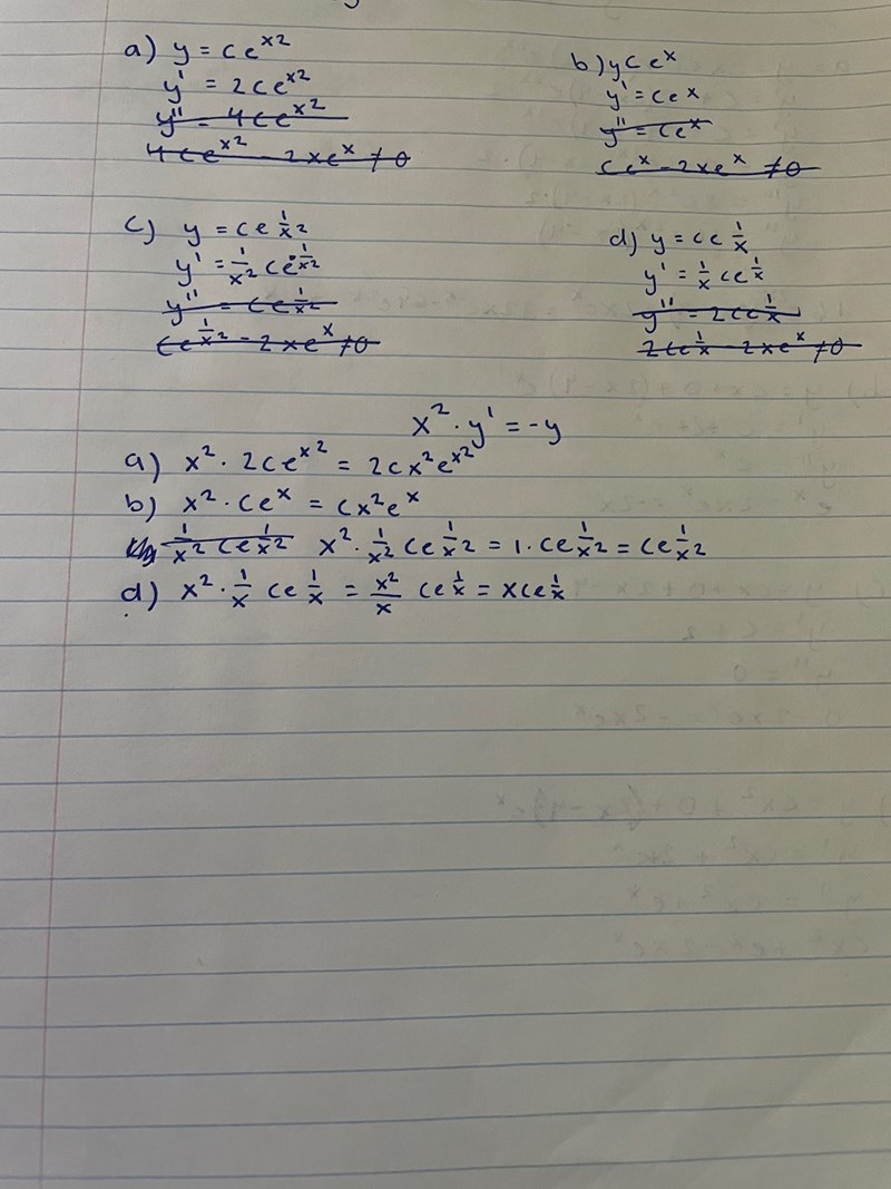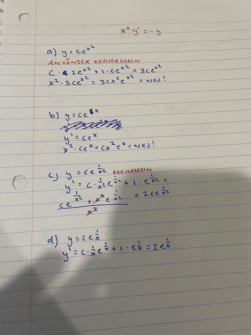 Pröva därför alla fyra alternativen, dvs derivera och sätt in i diffekvationen för att se om den är uppfylld.