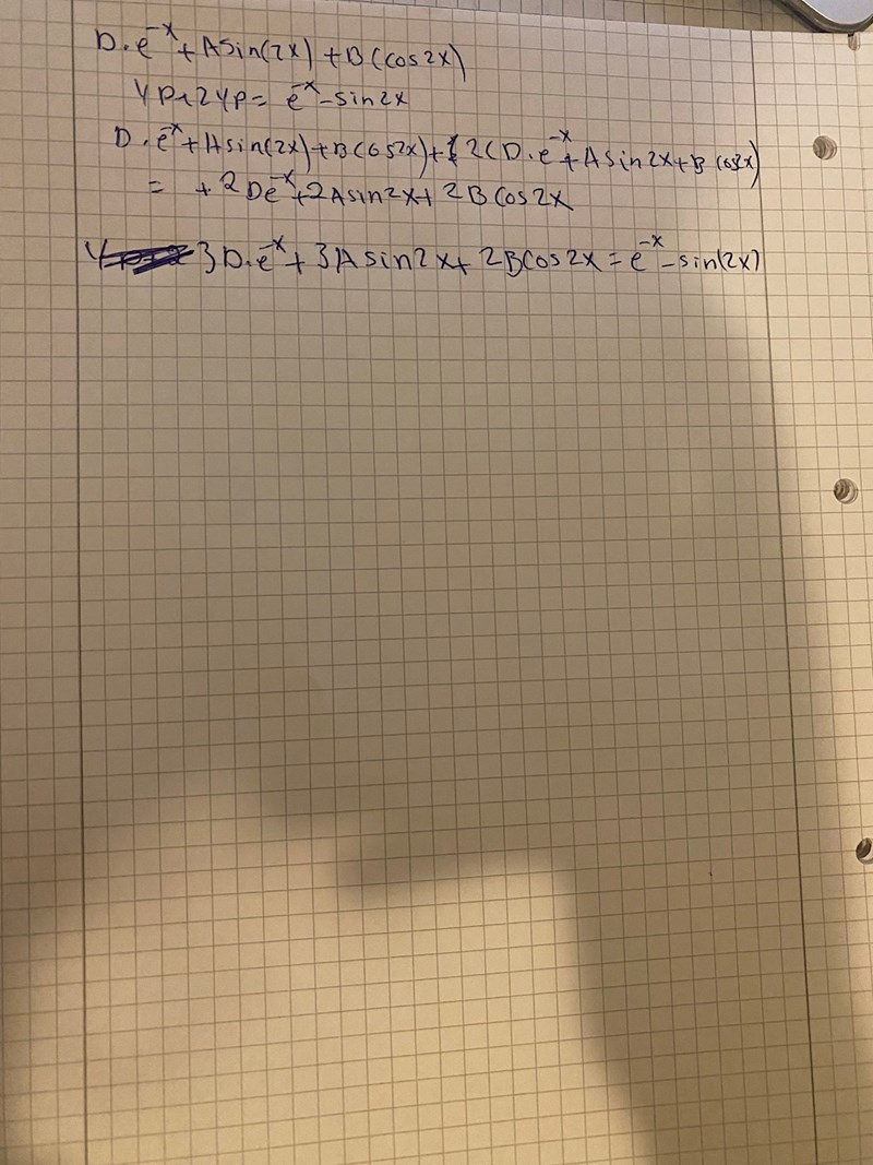 yp = D*e-x +Asin(2x) + B(cos(2x)