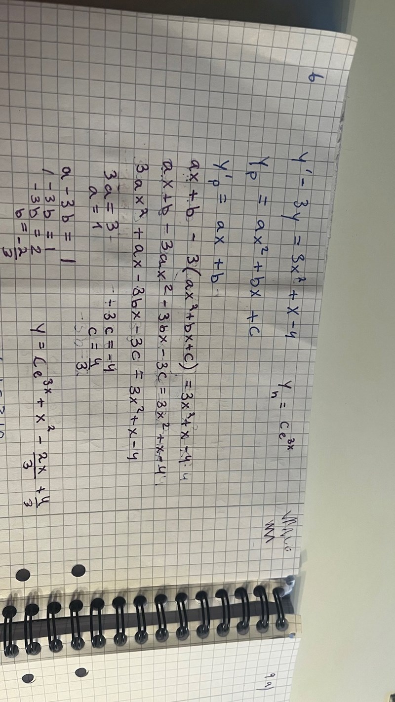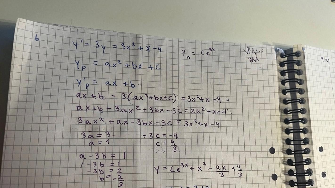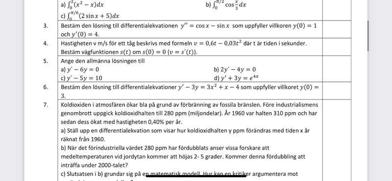 Hej, jag försöker lösa fråga 6 men lyckas inte få fram rätt svar… (1 - x - x^2 + 2e^3x enligt facit)
