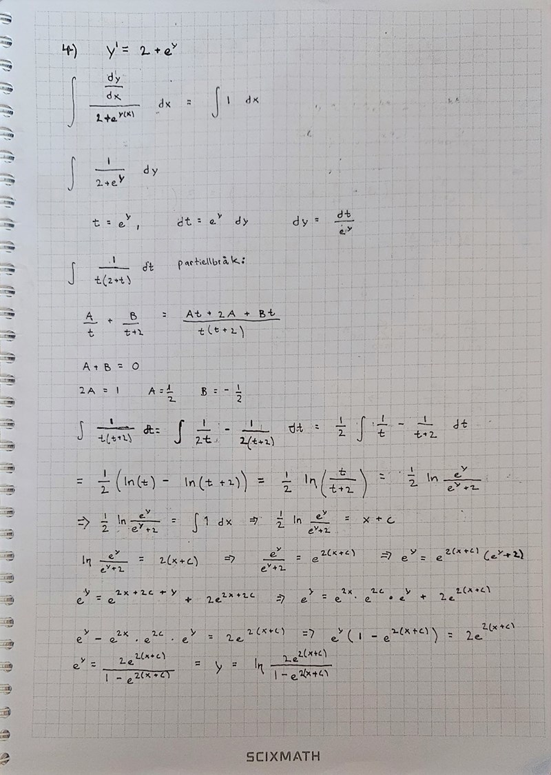 Konstanten kan du sätta framför exponentialfunktionen, som facit har gjort, eller lägga i exponenten, som Wolfram har gjort.