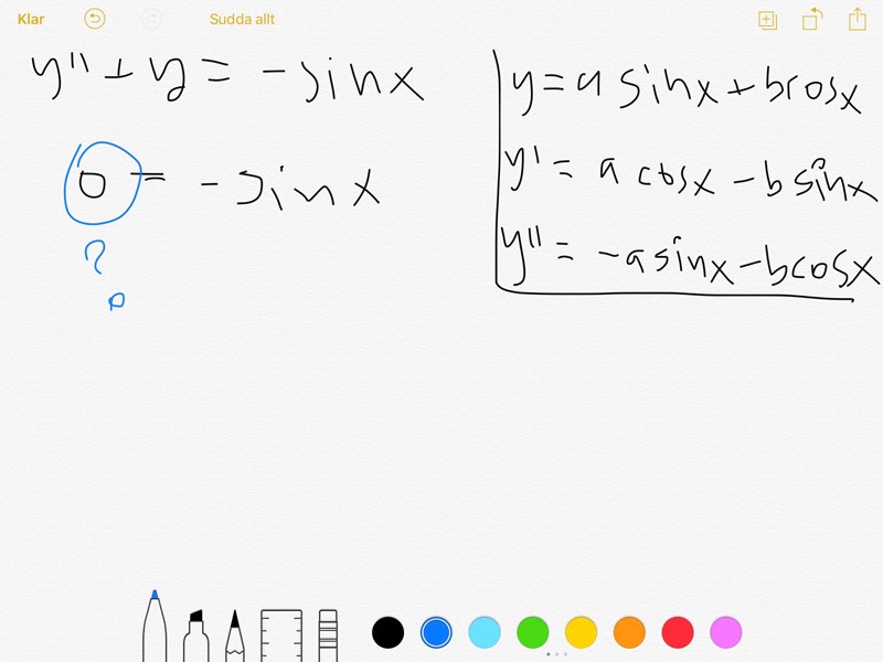 Hej, jag har svårt att finna ansättningen för partikulärlösningen ovan. All hjälp på vägen är mycket uppskattad, se mitt försök nedan;