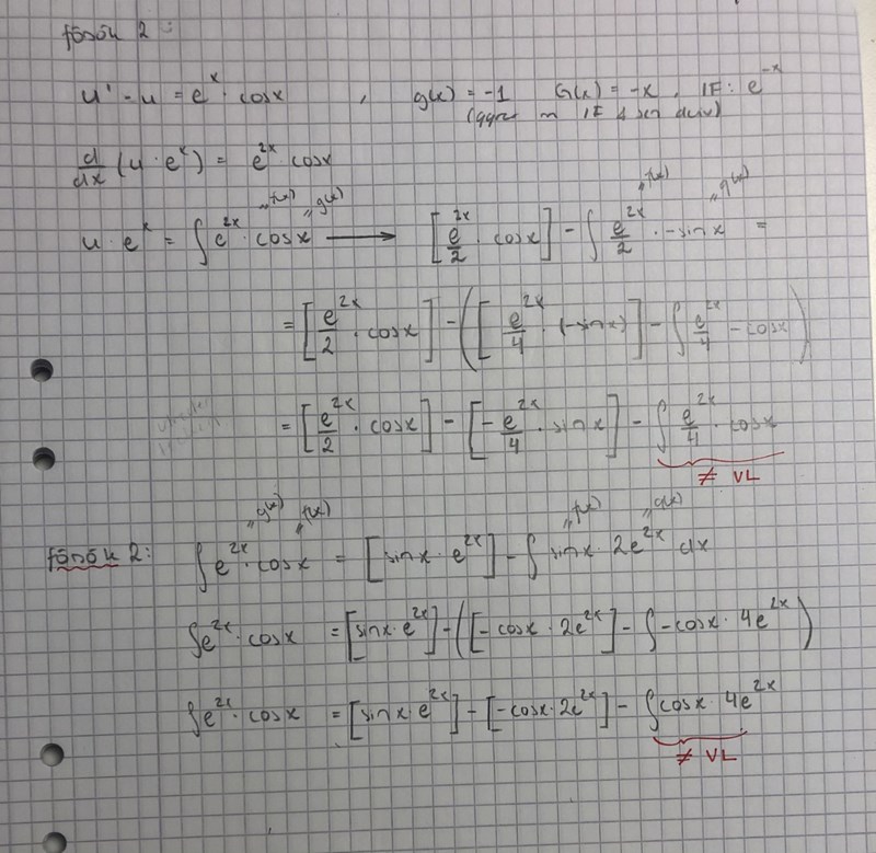 Kompendiet gick precis igenom att partialintergrera och få ett uttryck i HL som är samma som det i VL, eftersom man då kan flytta över detta. Detta försöker jag alltså göra nu, men det som är understruket med rött är inte lika med VL.