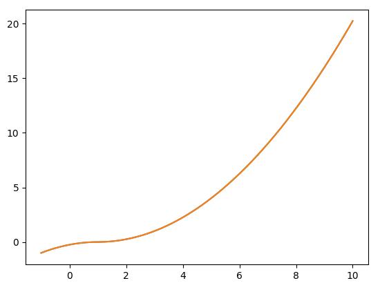 Det jag gör är att jag sätter y = -1 som startpunkt och stegar från t = -1 till t = 10, gör jag detta så ser min kurva ut så här: