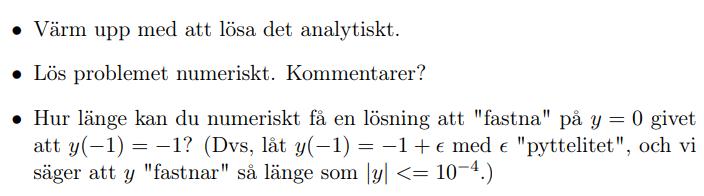 Om jag tolkar det rätt (vilket jag börjar tvivla på att jag gör) så ska jag sätta y(-1) = -1 + något litet tal.. men oavsett om jag ändrar min startpunkt till t.ex. y = -1 + 0.00001 så ser kurvan exakt likadan ut.