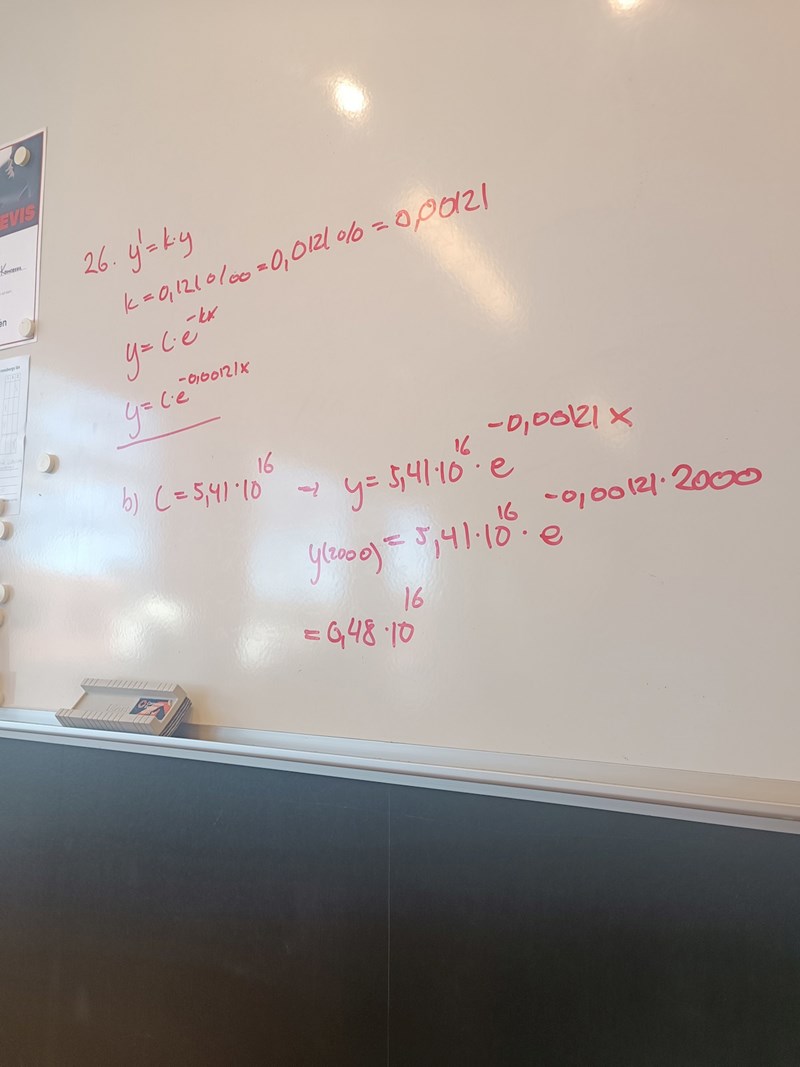 b) Det finns 5,41 * 10^16 kol-14 atomer från början i ett preparat. Hur många atomer finns det efter 2000 år?