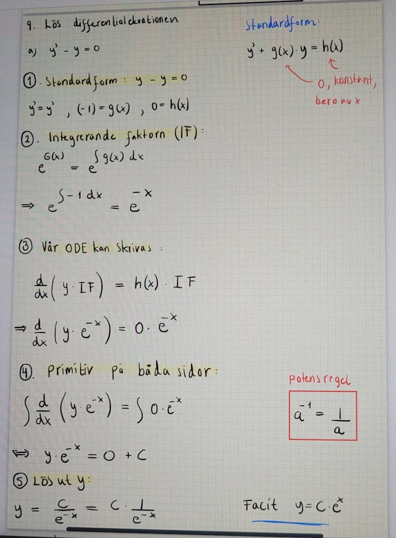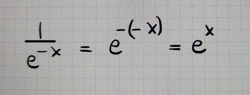 Har jag använt rätt metod för jag får inte helt rätt? Eller går det att skriva om 1/e^-x till bara e^x?