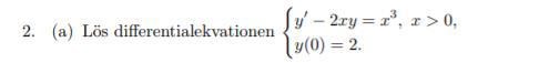 Jag vet hur jag ska lösa den linjära differentialekvationen för att få en allmän lösning. Det jag undrar är om x>0 gör någon skillnad när jag använder y(0)=2? Och om det gör någon skillnad undrar jag hur jag ska tänka och använda det? :)