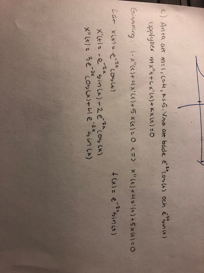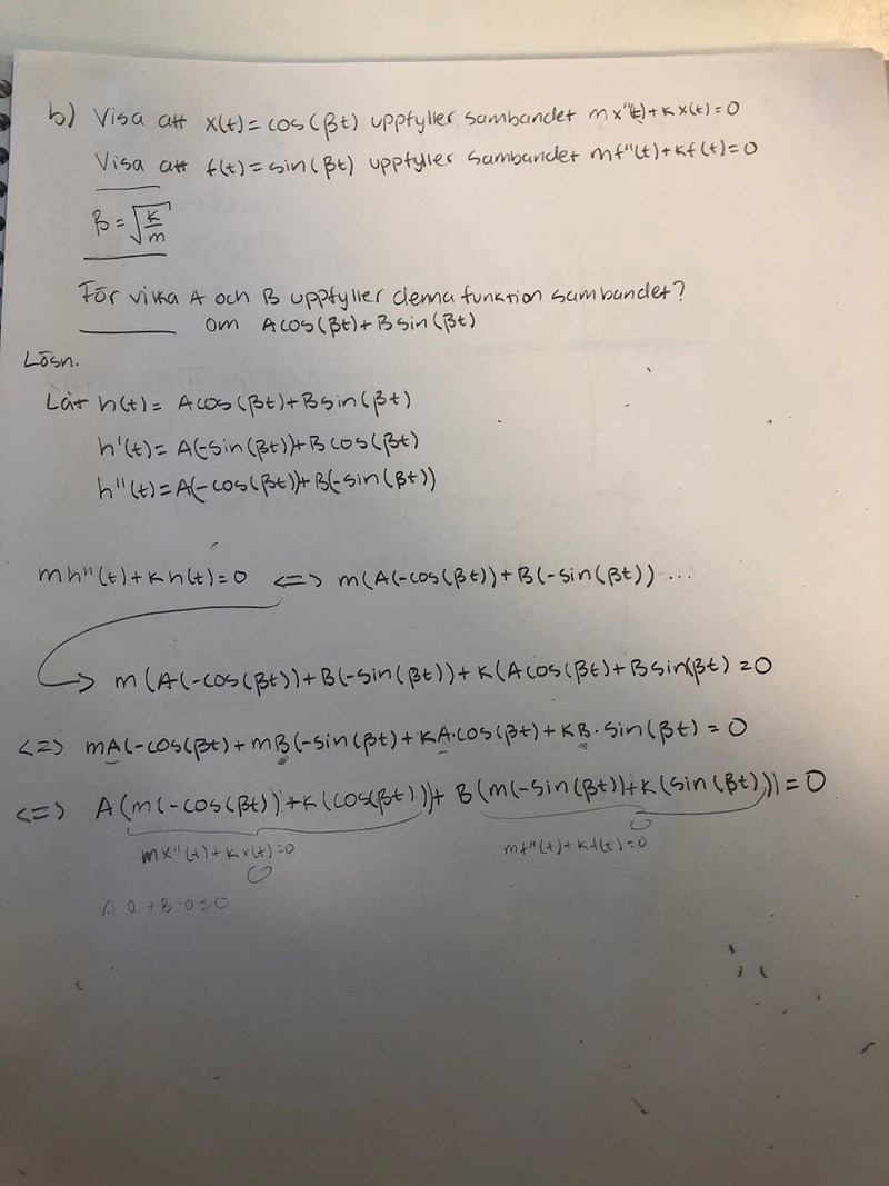 Alltså menar jag mx′′(t) + kx(t) = 0 & mx′′(t) + cx′(t) + kx(t) = 0