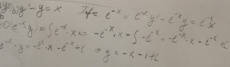 Men efter integral tecknet ska det vara - e^(-x), du har skrivit + istället i ditt svar på rad 1