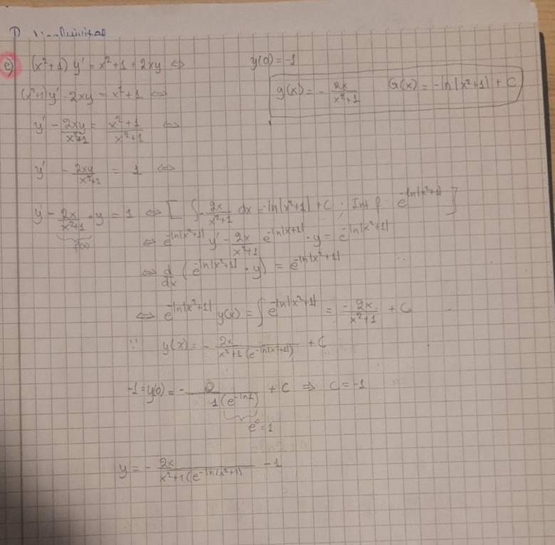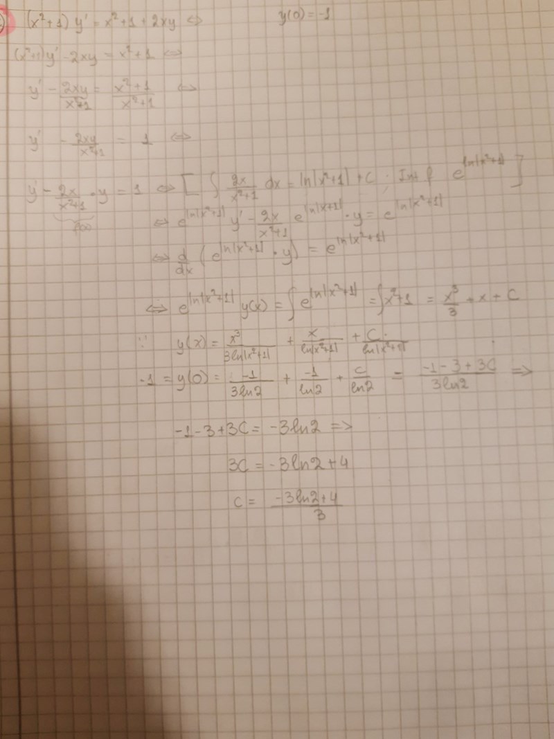 Kapi skrev:I facit står det y(x)=(x2+1)(-1+arctan) så du är ganska nära.