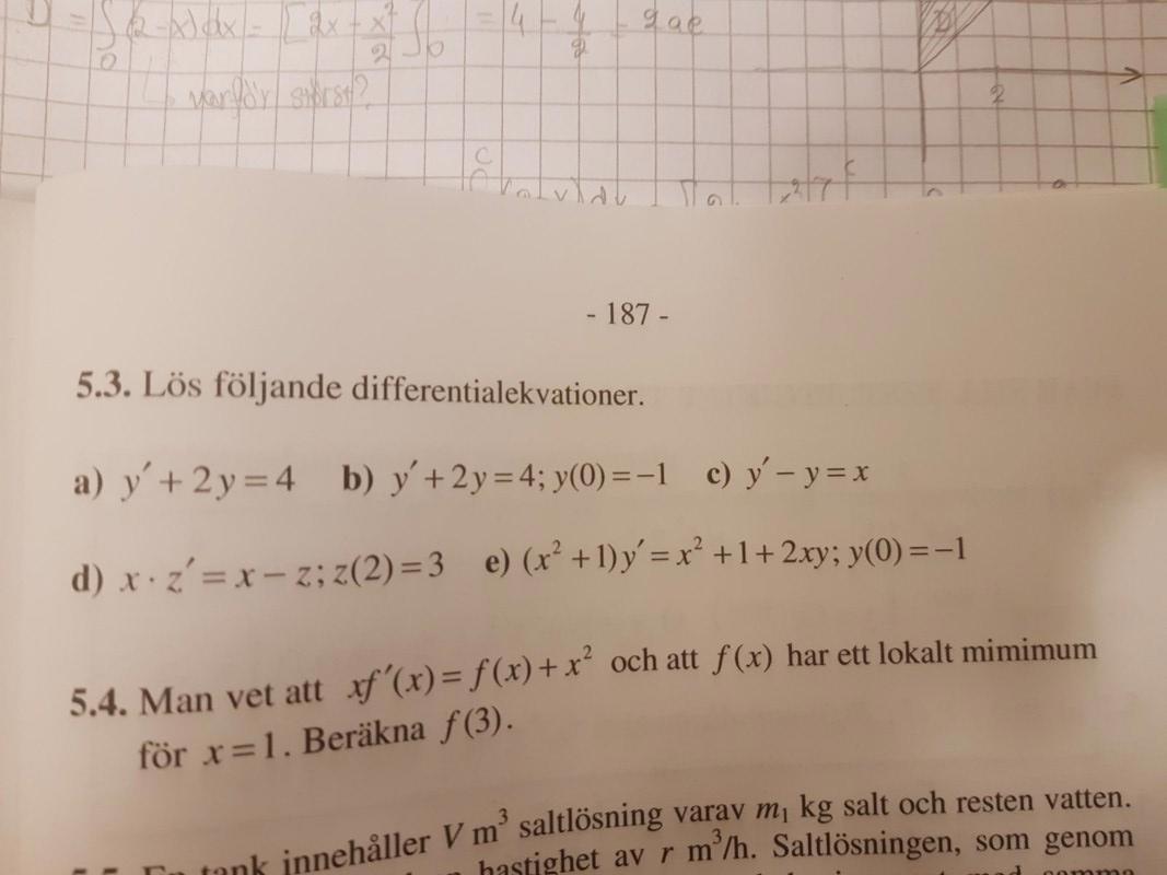 Nu kommer en fråga om 5.3 e) Jag för fel svar och misstänker att att felet börjar i y(x)