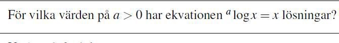För vilka värden på a>0 har ekvationen a log x = x lösningar?