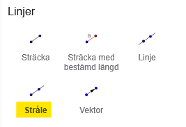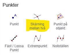 Ta fram skärningspunkten mellan de två strålarna (klicka på FLER en gång till för att se verktygslådan "Punkter"):