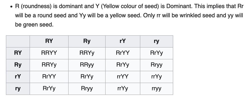 "Di" i dihybrid nedärvning anger att det är två. Dihybrid nedärvning beskriver vad som sker när två anlag som skiljer sig mellan två grupper korsas. Så det är motsvarande RY, Ry, rY, ry, från det klassiska exemplet på wikipeida nedan.