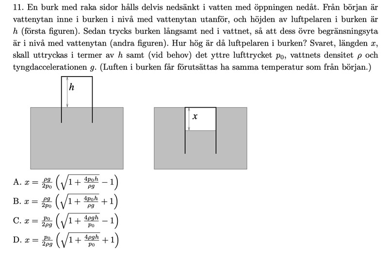 Är trycket vid nedre vattenytan p0 + pgx för att vattnets tryck där är p0 + pgx och det måste vara samma i burken? Isåfall är jag kanske med i svängarna