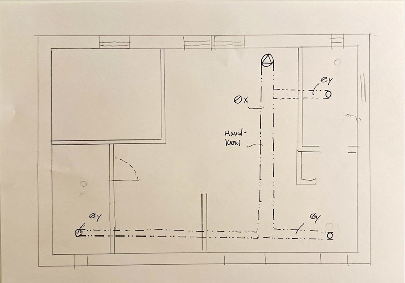 Det sista bilden är en skiss av kanalsystemet. Jag är väldigt osäker på om mina symboler är korrekt eller om detta är det mest effektiva sätt att placera kanaler / don.