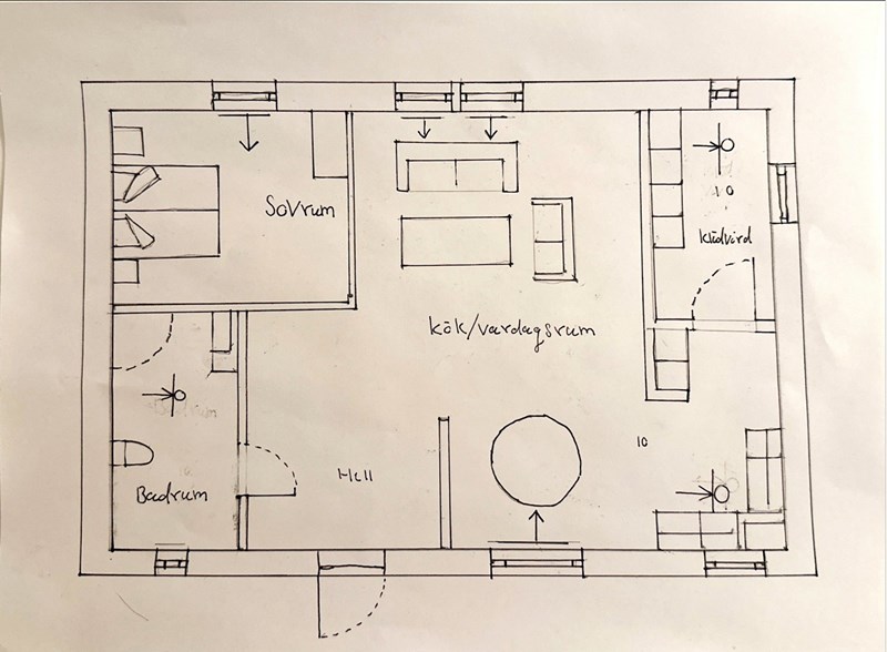 Jag har bifogat en planlösning som jag har skapat. Sedan har jag även bifogat planritning med insatta doner.