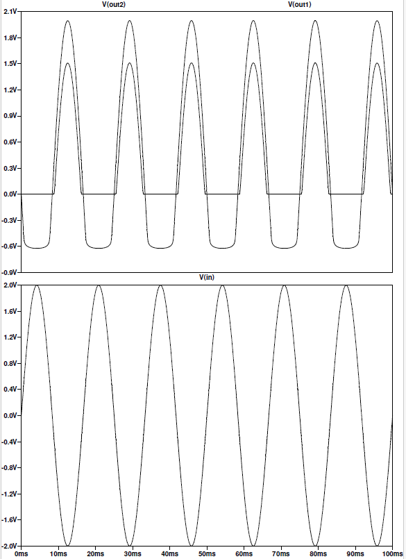 Vout1 är samma som Vop och den med största amplituden av utsignalerna. Vout2 är Uut
