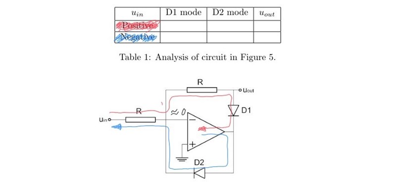 Rita i schemat spänningar och strömmar för en positiv spänning. Du kan ta uin = 1 volt, R = 1 k.