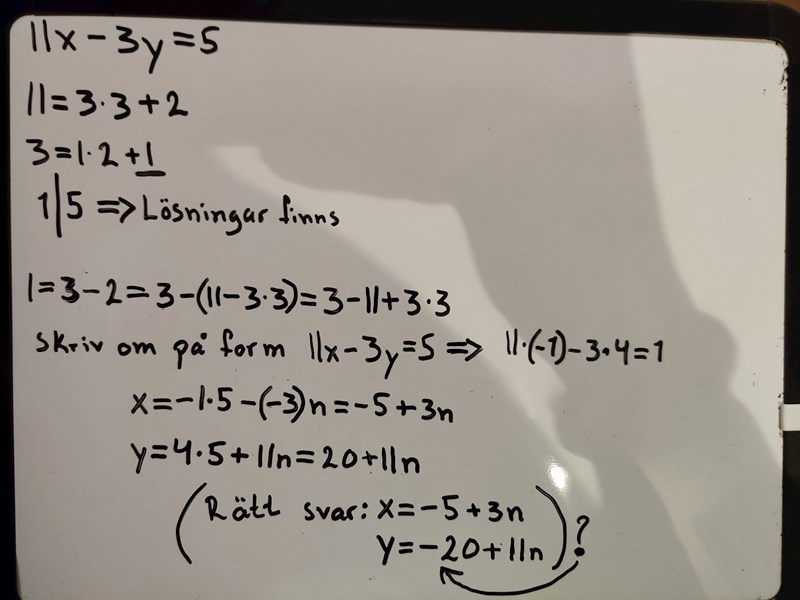 Sjätte raden: 11(–1) – 3*4 = –23, inte 1