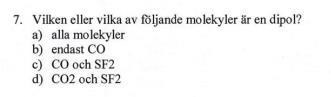Fel. Har du ritat upp hur molekylerna ser ut och kollar ifall de är symmetriska? Det räcker inte att bindningarna är polära för att ämnet ska bli en dipol.