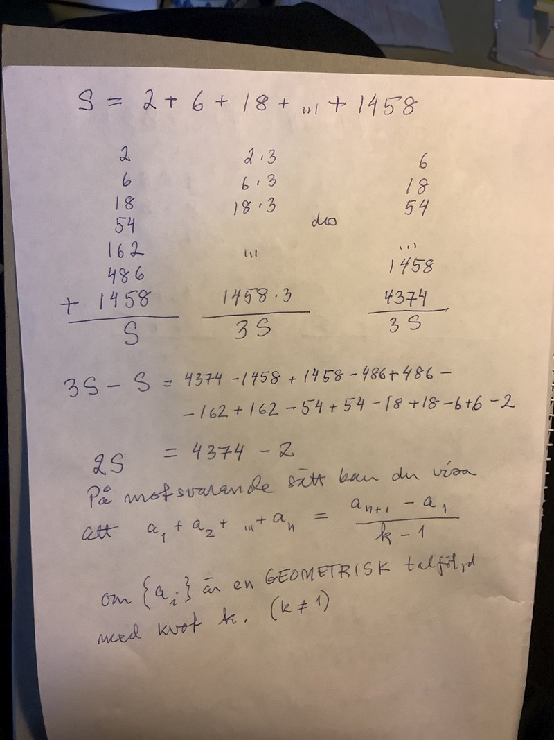 här är vad som finns i boken men han tog med något med n upphöjt, typ som en summa av talföljder