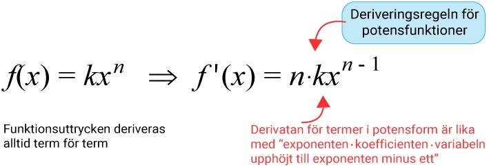 Vi ska alltså minska exponeten med 1 och multiplicera med exponeten,