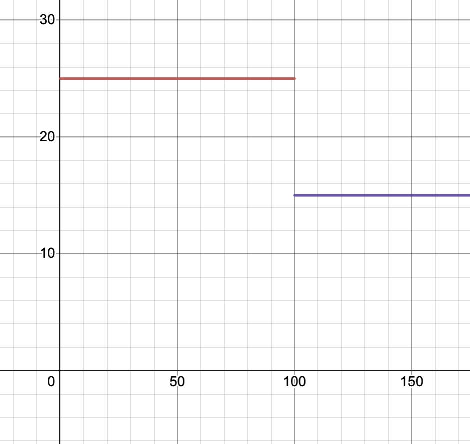 Om vi modellerar kilopriset, emot antalet kilo äpplen som köps, blir grafen: