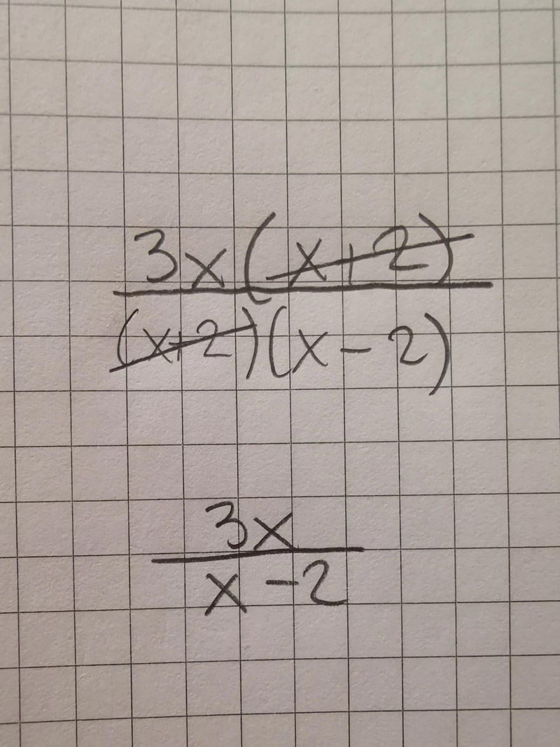 Hej hörni, jag får fortfarande inte till det. Vad är nästa steg efter att jag förenklat till 3x/x-2 ?