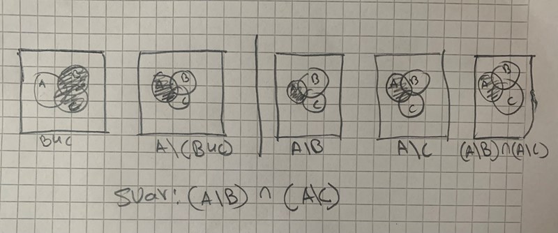 Uttryck mängden A\(B union C) med hjälp av snittet av två olika mängder.