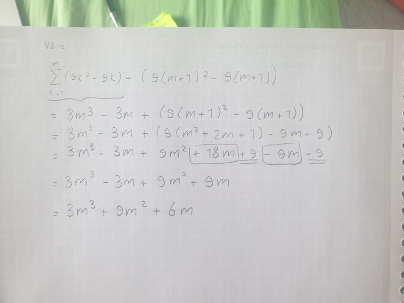 Jag har kommit hit men när jag försöker räkna vidare (räkna den andra summan och visa att VL = HL) så vet jag inte hur jag ska tänka där (alltså hur jag ska utveckla den andra summan och få vänsterledet att bli lika med högerledet). Därför lyckas jag inte få ut rätt värde på vänsterledet.. hur ska jag göra?