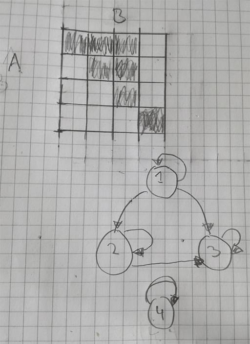 " Om en relation är reflexiv har matrisen ettor utmed hela huvuddiagonalen".